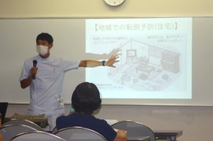 「運動で寝たきり予防、健康寿命を延ばそう」のテーマで、理学療法士がお話しました。