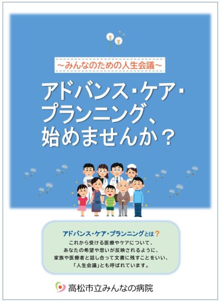 アドバンス・ケア・プランニング(ACP)とは、もしものときに受ける医療やケアについて、あなたの希望や思いが反映されるように、家族や医療者と話し合って文書に残し、共有する取り組みのことです。「人生会議」とも呼ばれています。